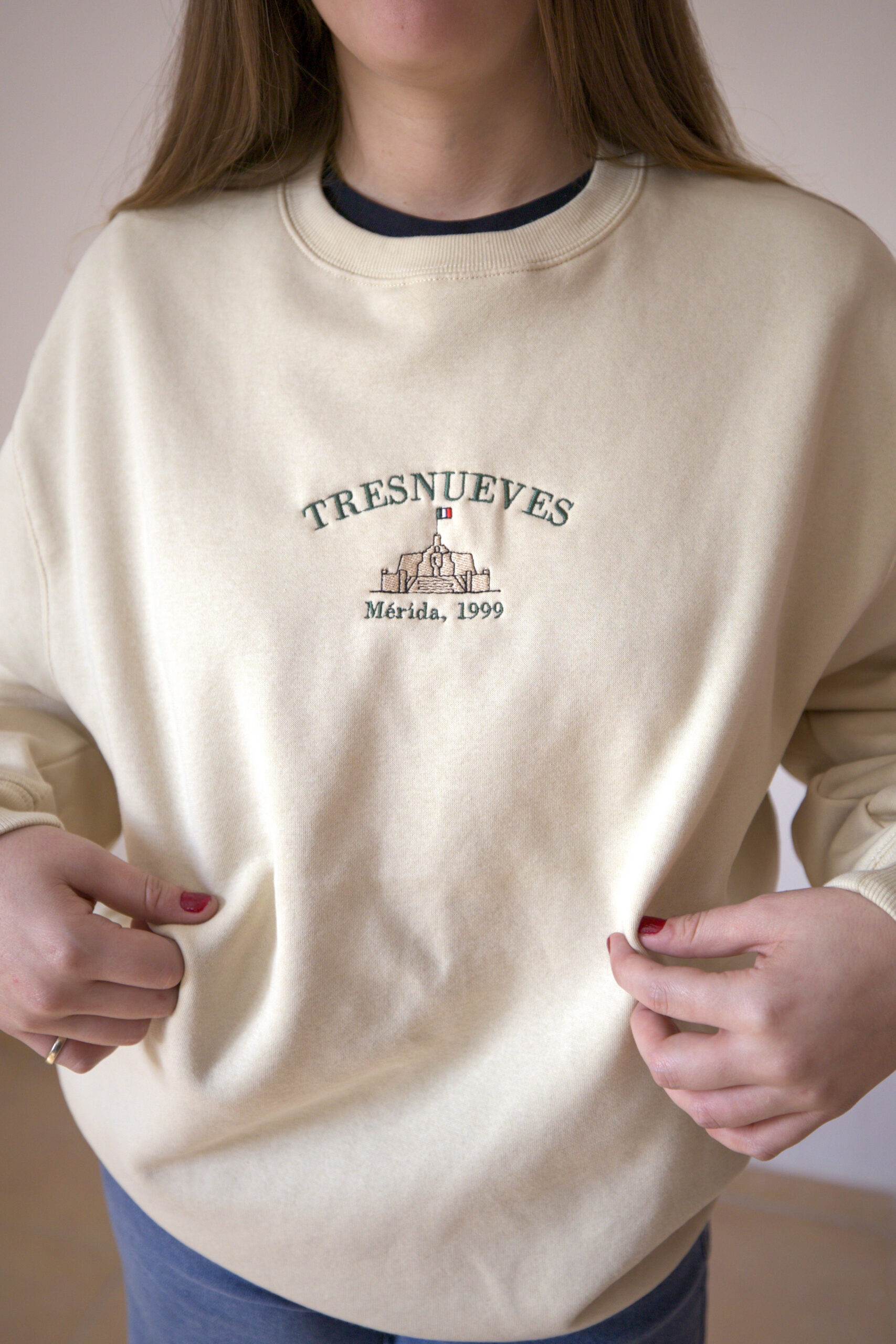 La sudadera Mérida Monumentos de Tres Nueves combina arte local y diseño moderno para crear una prenda única.